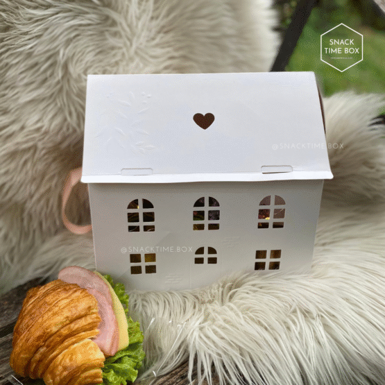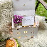 Presentación en caja boutique con diseño de mansión y cinta de raso a tono estilo carterita + Toque mágico de luces LED + Bouquet de flores naturales 💐